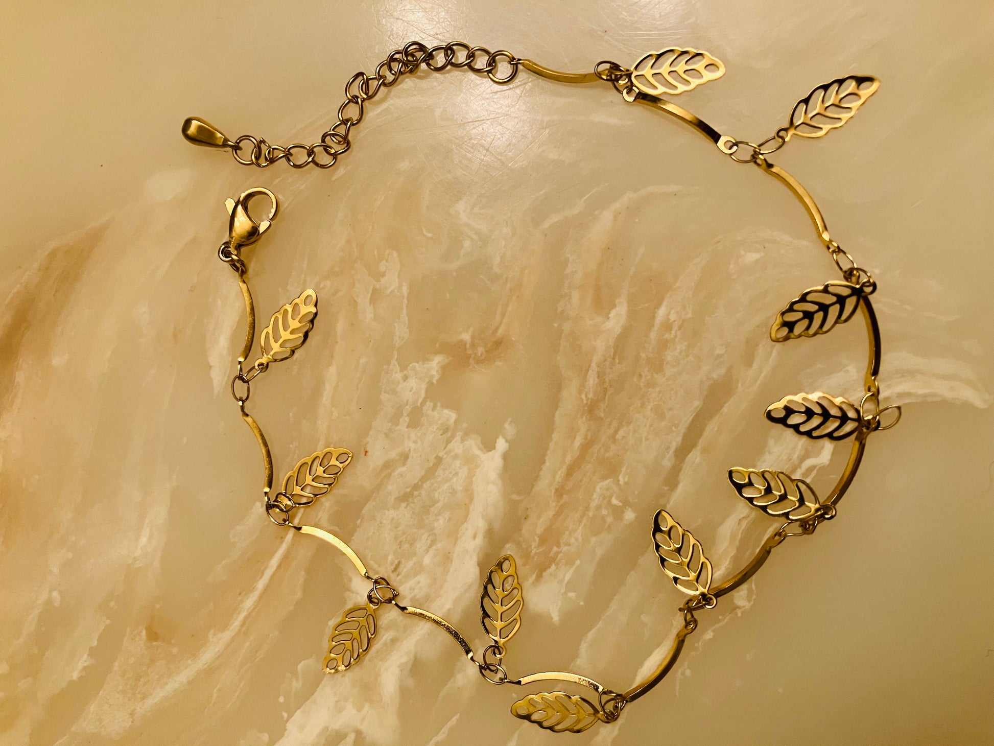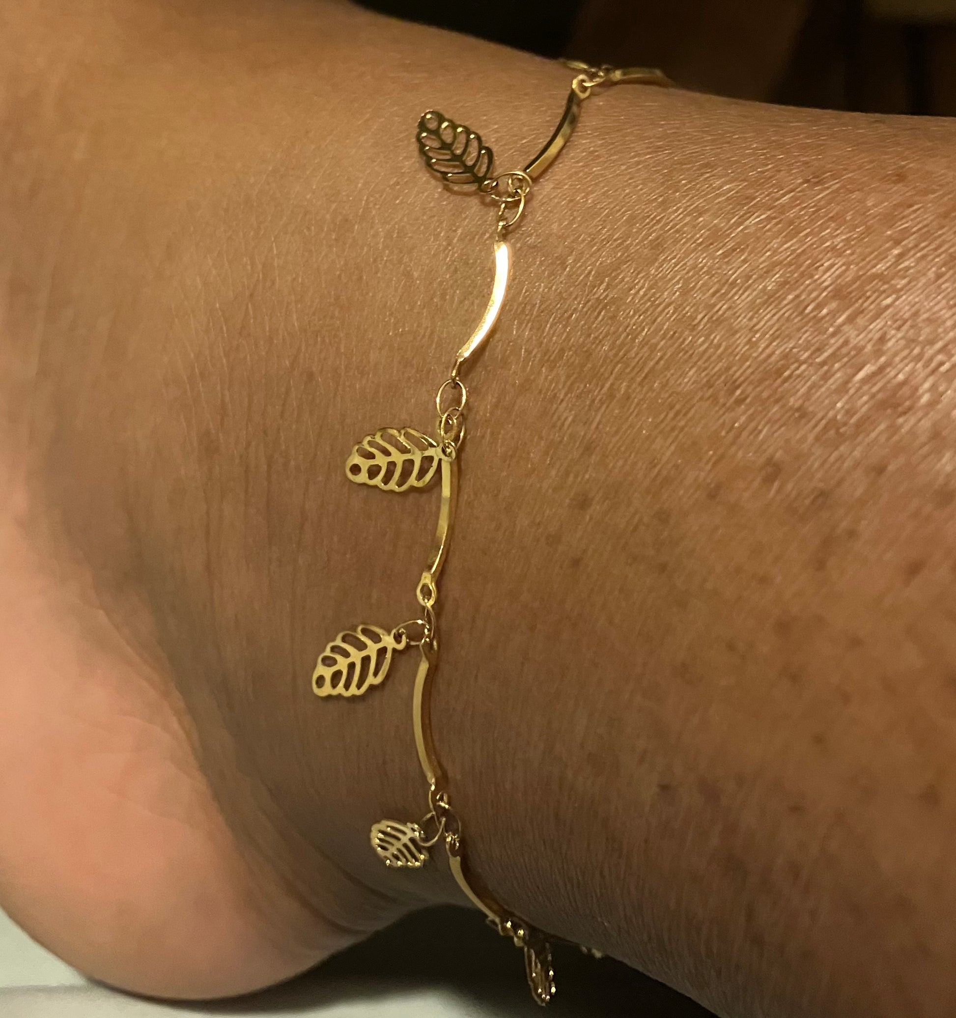 Sarah is a fun anklet dazzled with leaf charms. I'm not sure if you've heard but leaves symbolize growth, abundance, healing, and peace. Your jewelry should be a feeling in addition to your fashion sense.