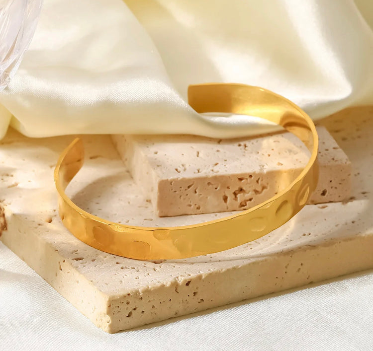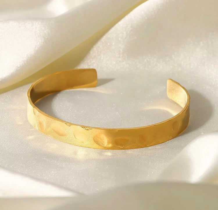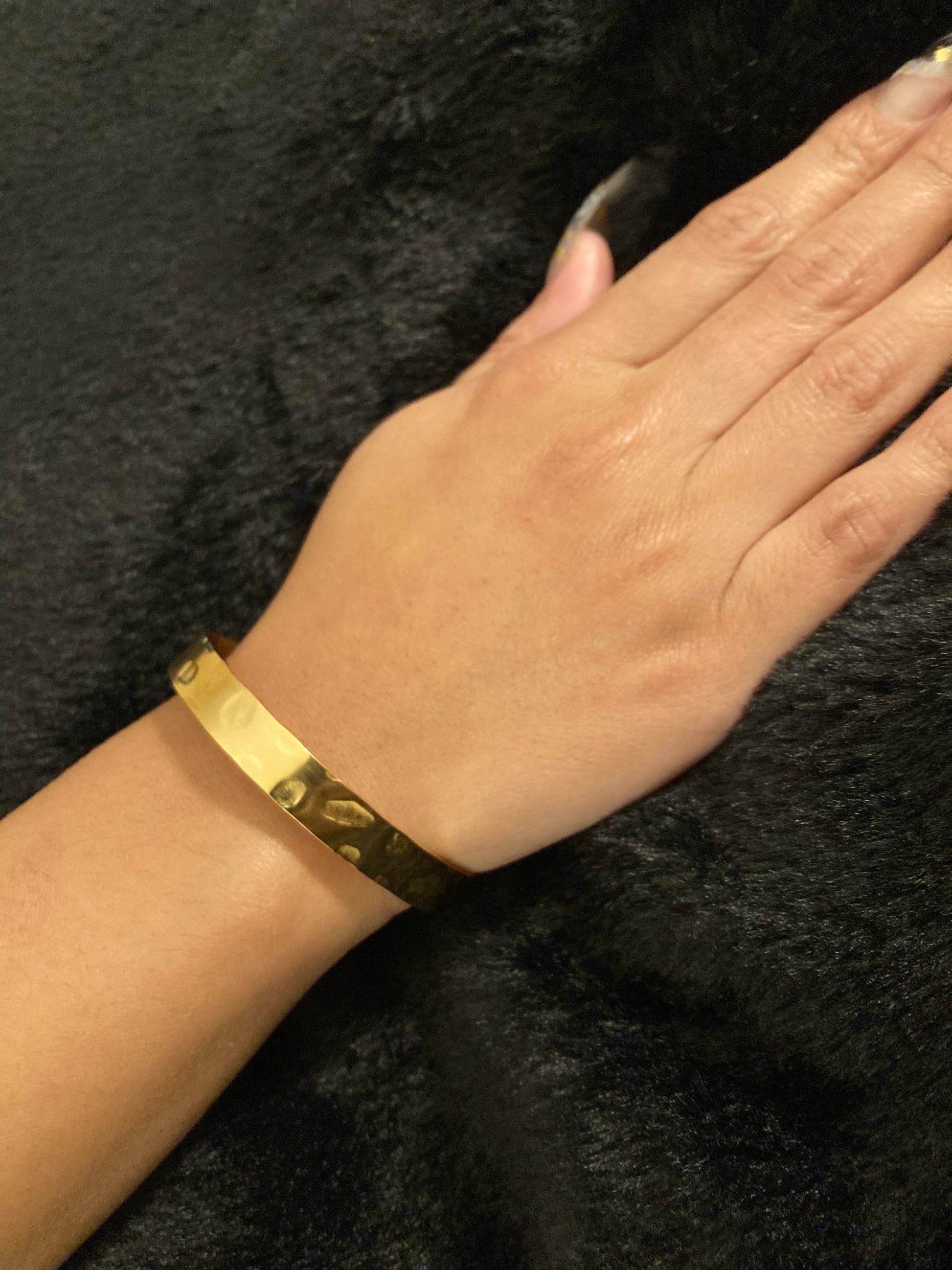 If you’re looking for arm candy “Rosa” is the perfect hammered cuff. She’s a good fit for layering but can stand on her own. She is subtle yet eye catching. She’s a piece we all need.
